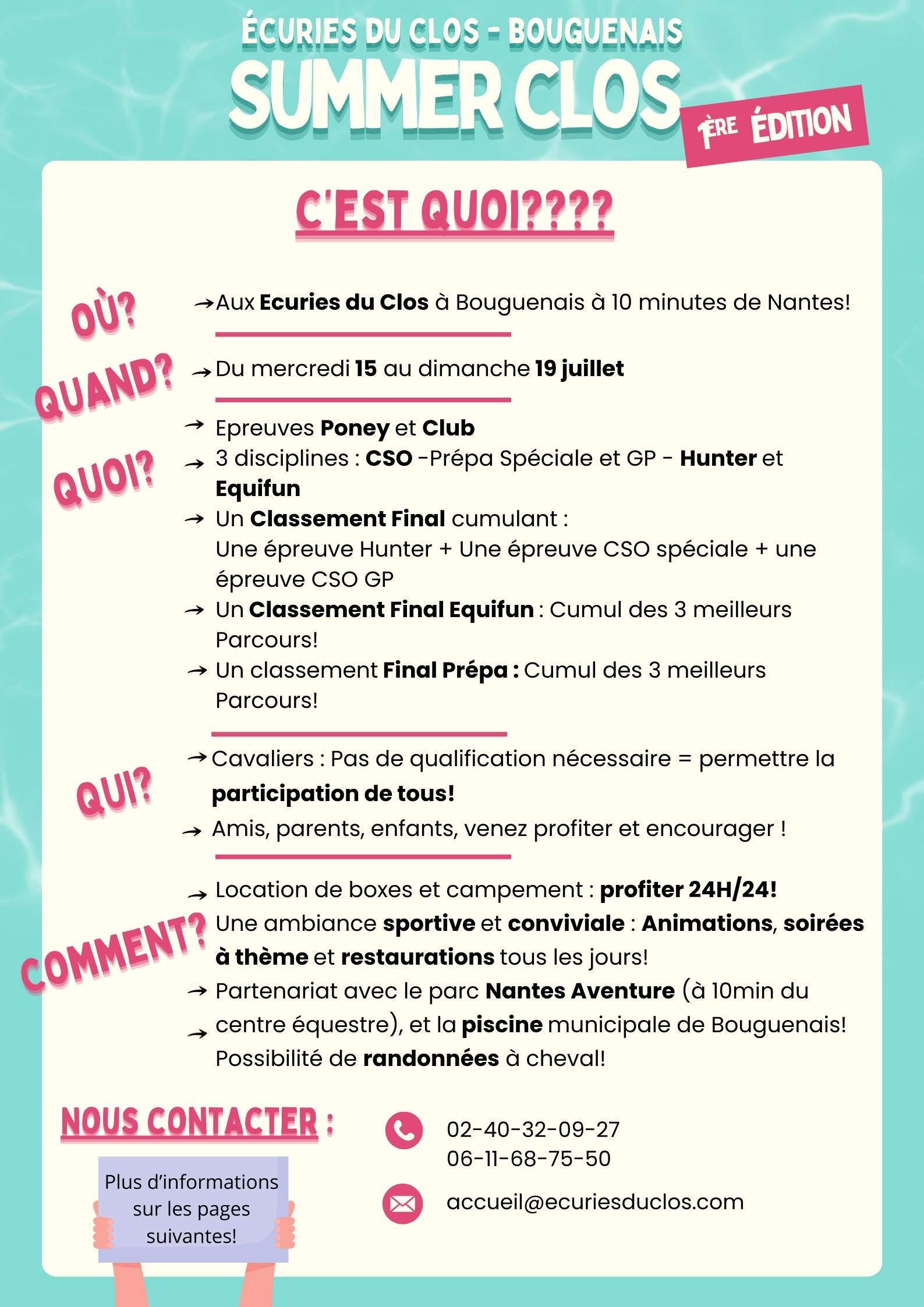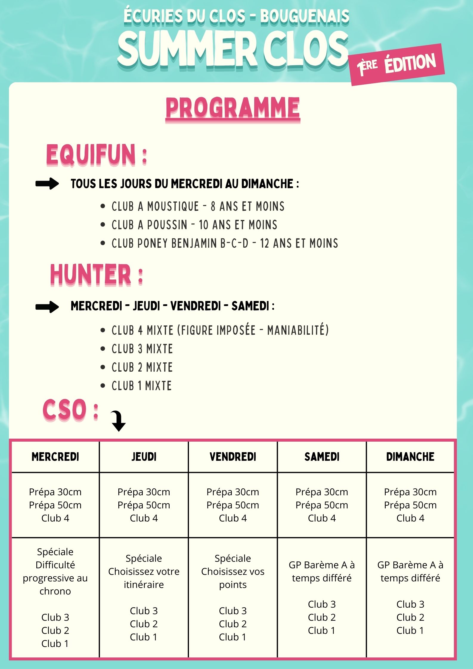 Planning et tarifs du pôle Cheval